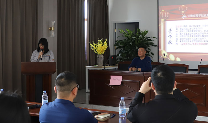 為確保公司發(fā)展戰(zhàn)略有效落實,全面實現(xiàn)公司2022年度各部門工作目標(biāo),強化企業(yè)執(zhí)行力,提升核心競爭力。2月20日,天津市瑞豐達(dá)金屬制品有限公司目標(biāo)責(zé)任狀簽約儀式隆重舉行??偨?jīng)理張加軍、CEO王娟、各部門負(fù)責(zé)人、中高層管理人員等出席此次會議。