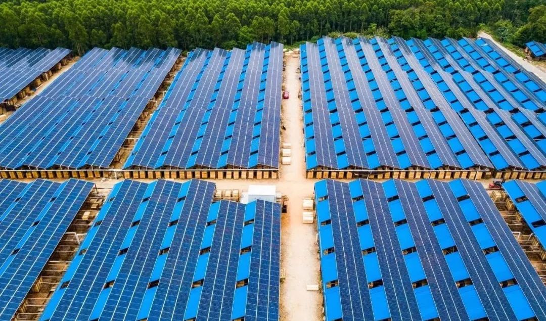 ????????中電合浦烏家鎮(zhèn)“林光互補”光伏發(fā)電項目,位于廣西壯族自治區(qū)北海市合浦縣,為生態(tài)林業(yè)光伏大棚發(fā)電項目。項目光伏組件選用單晶硅電池組件,采用耐候鋼光伏支架,固定式光伏陣列最佳傾角(15°)安裝在木材晾曬大棚頂上。逆變器選用組串式逆變器。光伏電站內(nèi)設28個光伏發(fā)電子系統(tǒng),通過35 kV集電線路接入110 kV升壓站,經(jīng)1臺50 MVA主變壓器升壓至110 kV后,以一回110 kV線路接入北海電網(wǎng),太陽能光伏電站發(fā)出的電量直接上網(wǎng)。電站總裝機容量為50MW,分兩期建設,一期建設20MW,二期建設30MW,一、二期工程投資概算3.51億元。兩期建成后年均發(fā)電量約為3717.14萬kW·h,每年可節(jié)約標煤21947噸。