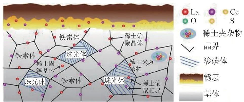 稀土原子化學性質(zhì)具備活潑、結合力強等特性,將稀土添加到鋼中可起到改善凝固組織、細化固態(tài)相變組織、使夾雜物變形無害化、偏聚強化界面、鈍化表面銹層等作用,從而顯著提高鋼的韌性、耐蝕性能、抗疲勞性能、耐熱性能等。 耐候鋼由普碳鋼添加少量銅、鎳等耐腐蝕元素而成,具有優(yōu)質(zhì)鋼的強韌、塑延、成型、焊割、磨蝕、高溫、抗疲勞等特性;耐候性為普碳鋼的 2一10 倍,涂裝性為普碳鋼的 1.5一10 倍。