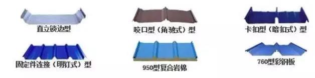 2、彩鋼瓦屋頂裝置系統(tǒng):彩鋼板屋頂多用卡扣、暗扣、鎖邊等非穿透方式裝置,特殊狀況下可采用穿透性裝置。