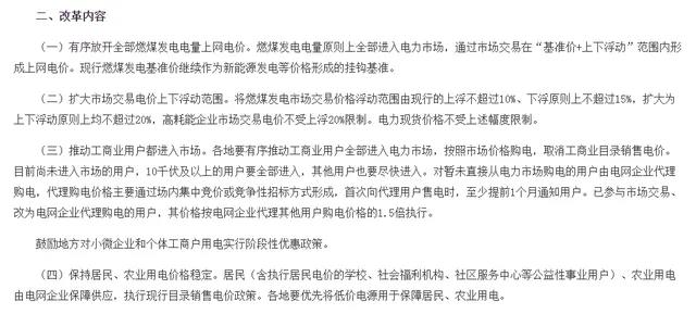 ? ? ? 10月12日,國家發(fā)改委印發(fā)《進一步深化燃煤發(fā)電上網(wǎng)電價市場化改革的通知》,明確表示燃煤發(fā)電電量原則上全部進入電力市場,通過市場交易在“基準價+上下浮動”范圍內(nèi)形成上網(wǎng)電價。市場交易電價浮動范圍由現(xiàn)行的上浮不超過10%、下浮原則上不超過15%,擴大為上下浮動原則上均不超過20%,高耗能企業(yè)市場交易電價不受上浮20%限制,并全面推動工商業(yè)用戶進入市場,有序推動尚未進入市場的工商業(yè)用戶全部進入電力市場,取消工商業(yè)目錄銷售電價,促進工商業(yè)企業(yè)購電全部實現(xiàn)市場化,從即日起一個月內(nèi)為市場化交易的過渡期,從12月起,企業(yè)購電全面采用市場化電價來結(jié)算。