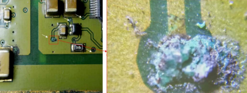 圖4:逆變器內(nèi)部被腐蝕的 PCB 板和組件