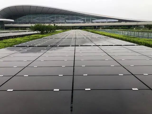 ????????北京大興國際機場停車樓屋頂光伏發(fā)電系統(tǒng)項目建設于大興國際機場東停車樓和西停車樓2幢建筑,安裝面積達到1.8萬平方米。項目根據(jù)建筑分布情況將整個發(fā)電系統(tǒng)分為若干個子系統(tǒng),每個子系統(tǒng)太陽能光伏發(fā)電電力經(jīng)直流匯流-逆變-交流匯流后,并入項目380V母線,所發(fā)電量自發(fā)自用,多余電量送入當?shù)嘏潆娋W(wǎng)。