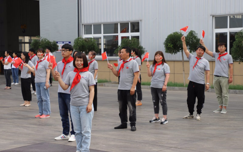 瑞豐達(dá)全體員臉上貼著國(guó)旗標(biāo)志,手拿中國(guó)國(guó)旗并佩戴紅領(lǐng)巾,滿面春風(fēng),神采飛揚(yáng)。