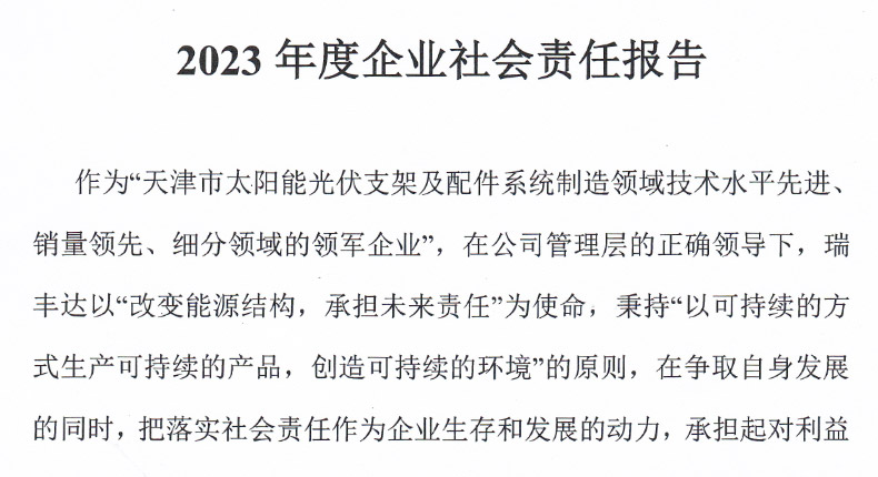作為“天津市太陽(yáng)能光伏支架及配件系統(tǒng)制造領(lǐng)域技術(shù)水平先進(jìn)銷量領(lǐng)先、細(xì)分領(lǐng)域的領(lǐng)軍企業(yè)”,在公司管理層的正確領(lǐng)導(dǎo)下,瑞豐達(dá)以“改變能源結(jié)構(gòu),承擔(dān)未來(lái)責(zé)任”為使命,