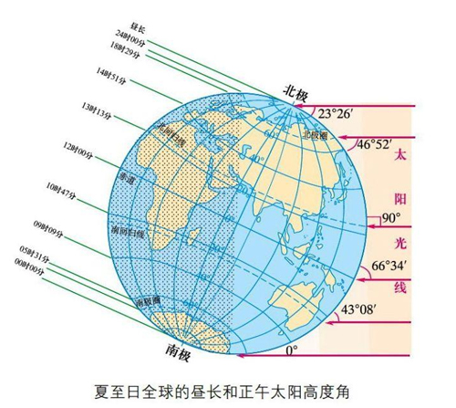 表2夏至日正午太陽高度角